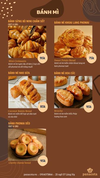 Menu bánh tươi mỗi ngày